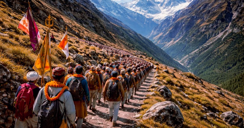 बर्फ से ढकी चोटियों और उच्च हिमालय के घास के मैदानों से होकर गुजरने वाली यह धार्मिक यात्रा सबसे कठिन और सबसे लंबी पैदल यात्राओं में से एक मानी जाती है, जिसे 22 से अधिक पड़ावों पर रुकते हुए पूरा किया जाता है।